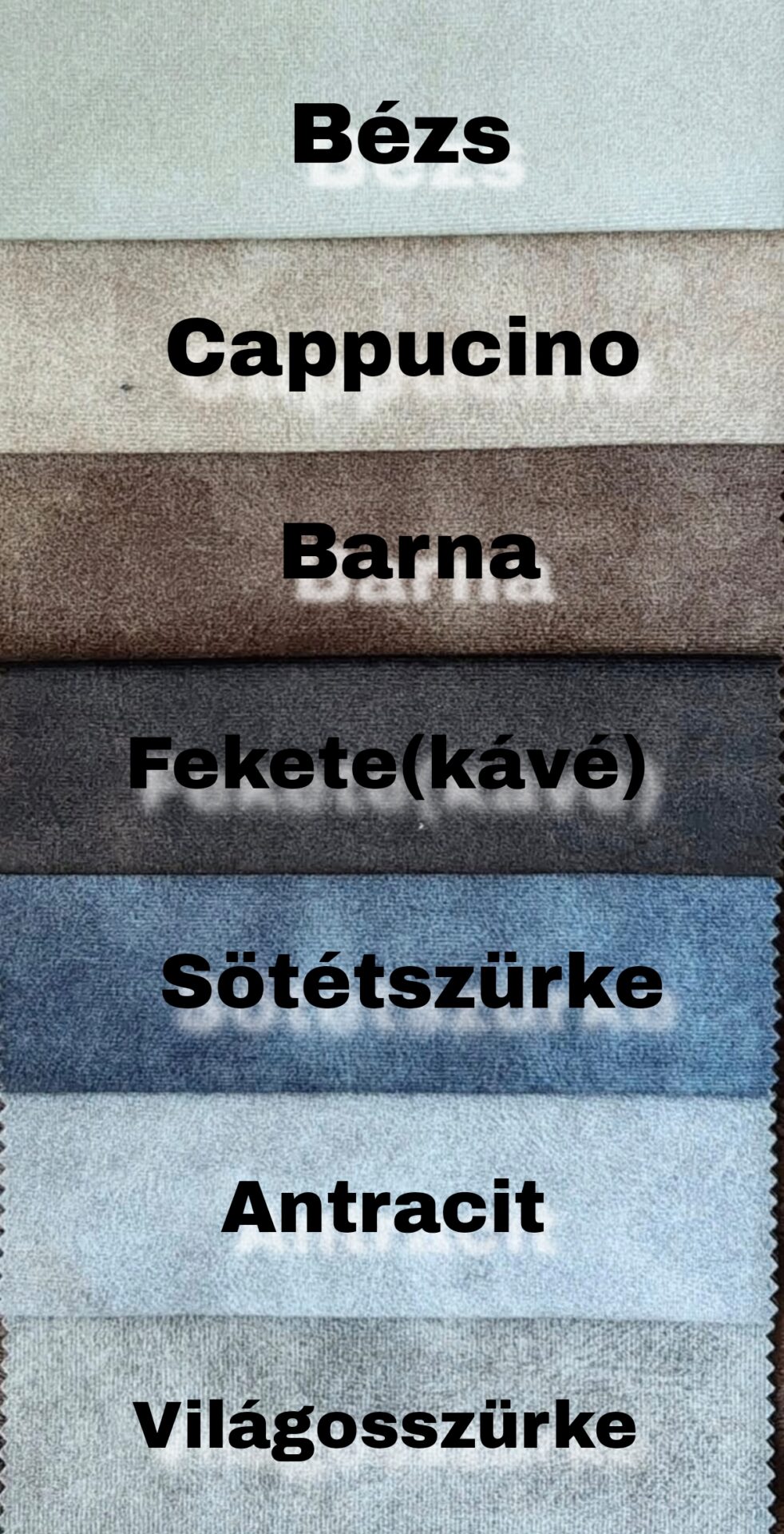 Elérhető színek: bézs, cappuccino, barna, fekete (kávé árnyalat), sötét szürke, antracit, világos szürke.