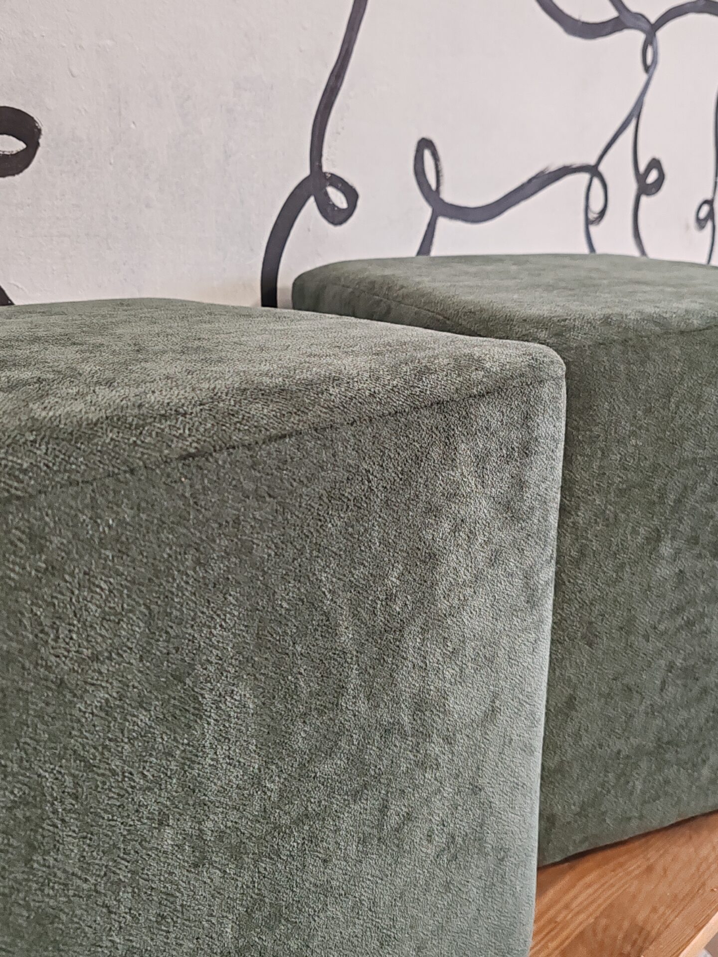 A Bársony puff elegáns, letisztult formájával bármely nappali, hálószoba vagy előszoba stílusos kiegészítője lehet. A 40×40×40 cm méretű ülőalkalmatosság stabil szerkezetét újrahasznosított faanyag biztosítja, amit teljesen szivacsozott felület és puha, bársonyos kárpitozás tesz kényelmessé.
